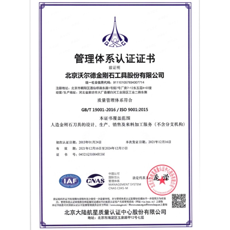 2015年2月,北京沃爾德完成股份制改造,正式更名為北京沃爾德金剛石工具股份有限公司。