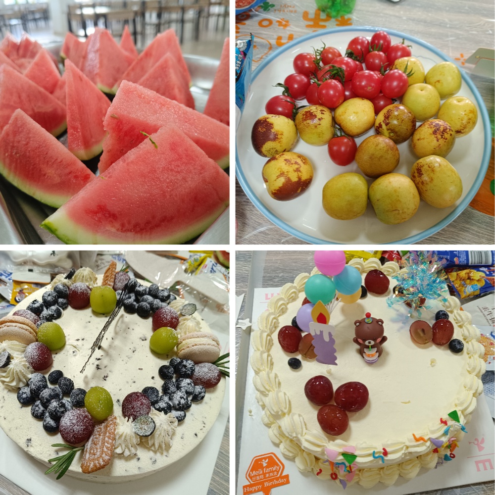 精心布置的場地,整齊擺放的禮物,各種可口的美食,讓壽星們對生日會充滿了期待。