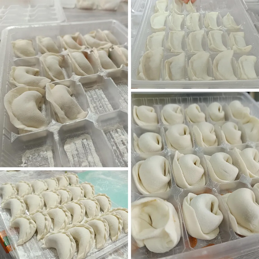 有的餃子圓潤(rùn)飽滿(mǎn),憨態(tài)可掬;有的線條利落,月牙分明;有的別出心裁,元寶造型寓意吉祥;也有的帶著“新手印記”,卻誠(chéng)意滿(mǎn)滿(mǎn)。