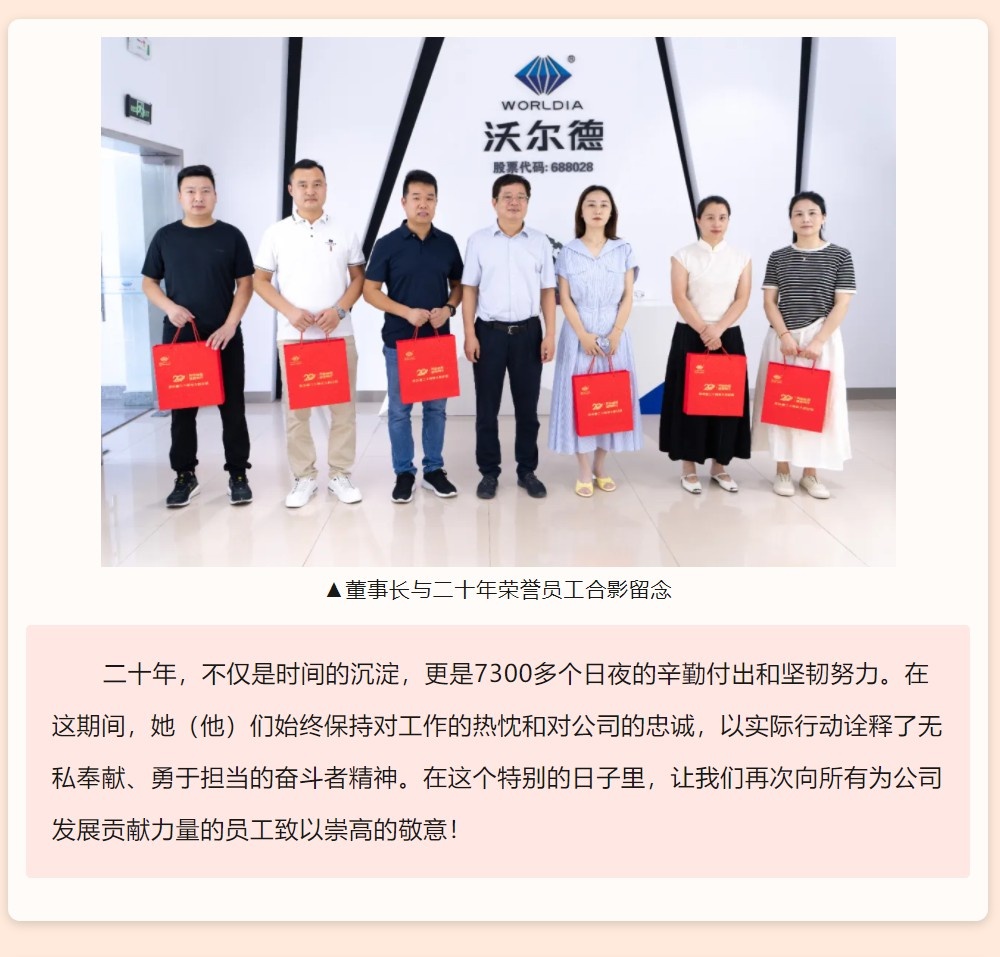 感恩同行 | 2024年度沃爾德二十年榮譽員工紀念品頒發(fā)儀式圓滿落幕 2024-07-23 13:54:31 北京沃爾德金剛石工具股份有限公司 瀏覽次數(shù) 5301 上一條大膽猜想 嚴謹論證 | 專訪沃爾德-劉爾凱專家研究室 下一條誠信 價值 巔峰 | 沃爾德上市五周年!