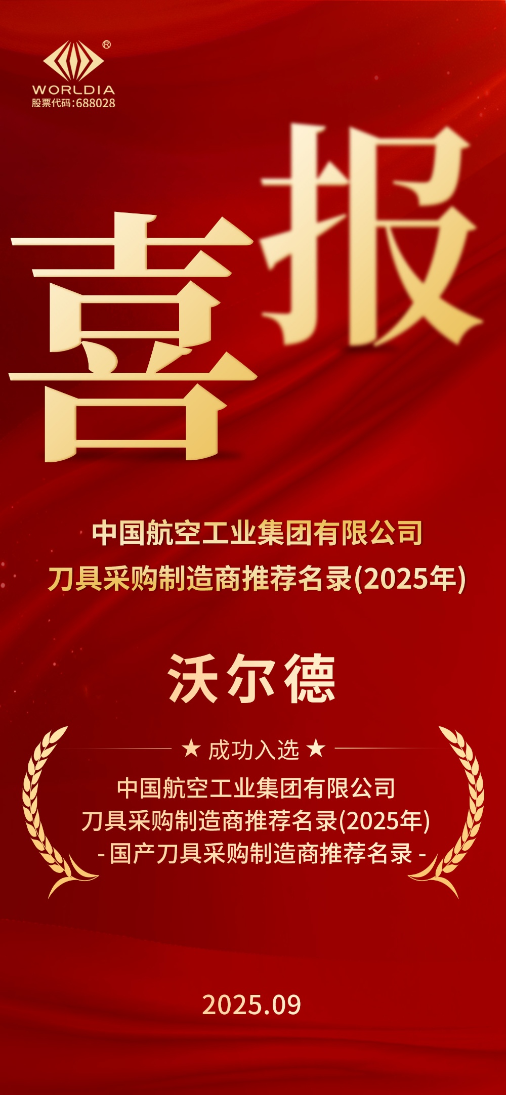 喜報(bào) | 沃爾德再次入選中國(guó)航空工業(yè)集團(tuán)有限公司刀具采購(gòu)制造商推薦名錄