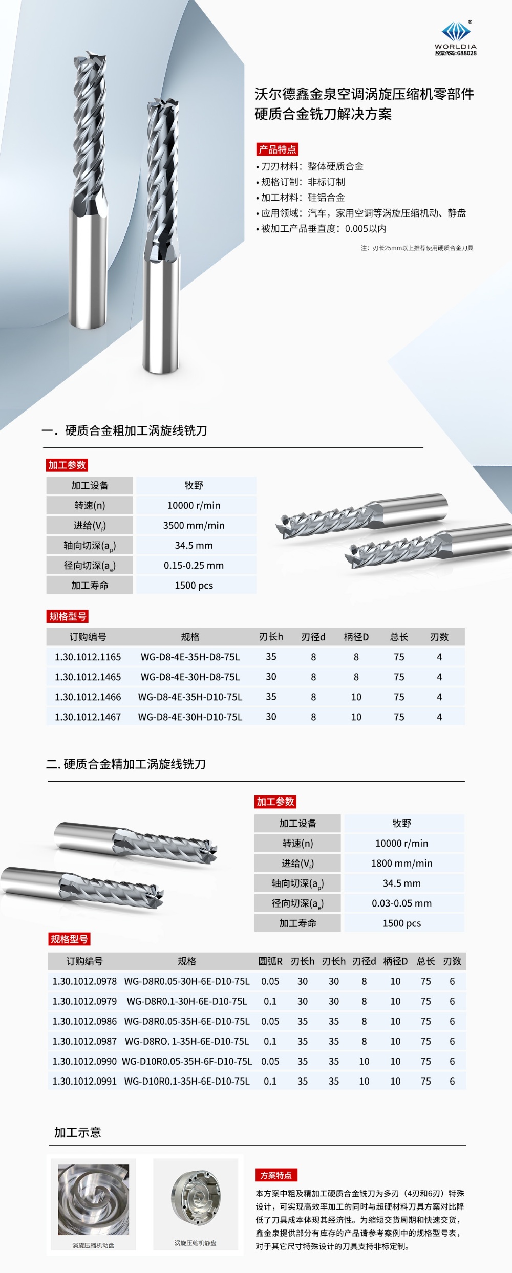沃爾德鑫金泉空調渦旋壓縮機零部件硬質合金銑刀解決方案