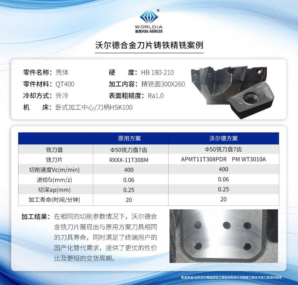 沃爾德合金刀片鑄鐵銑削案例:自研納米PVD涂層,超細(xì)晶?;w,成功實(shí)現(xiàn)國產(chǎn)化替代