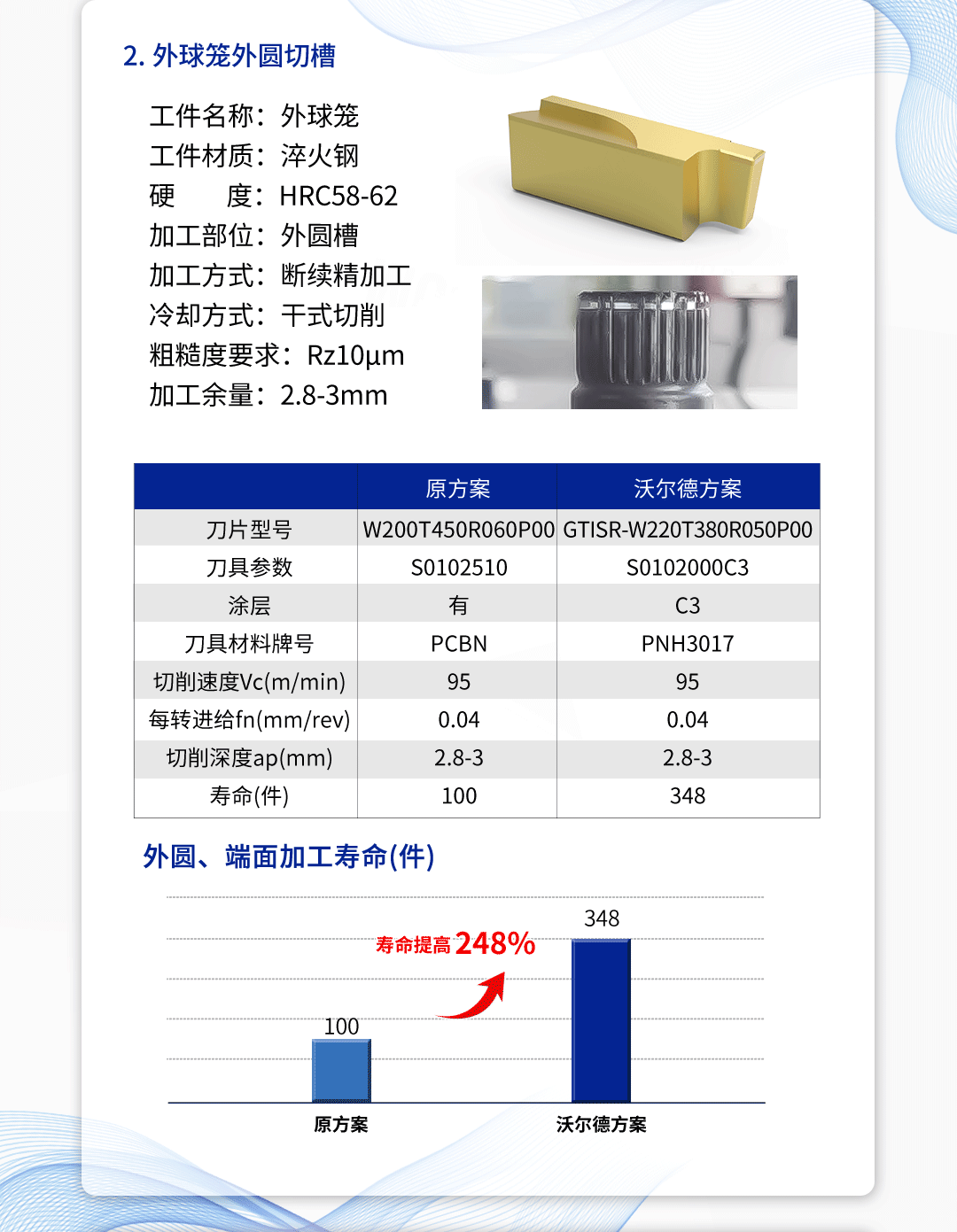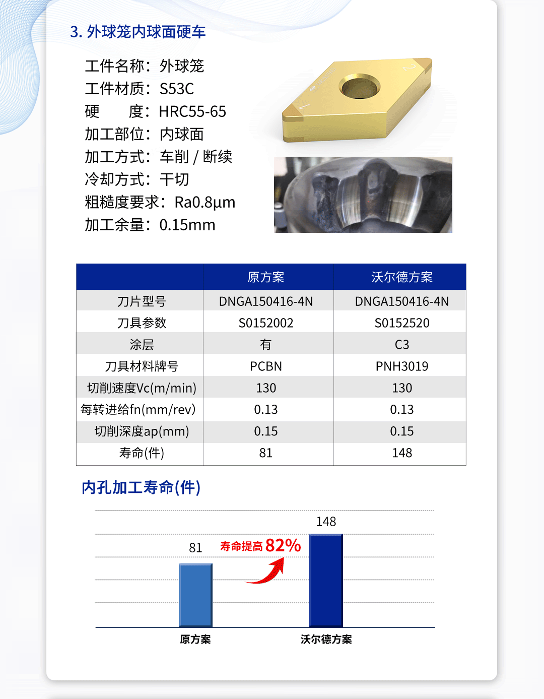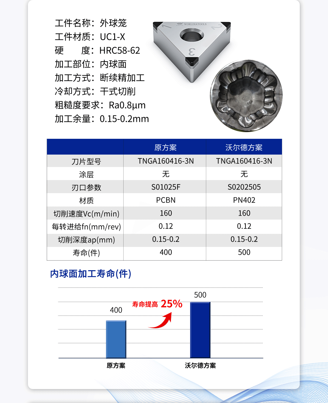 沃爾德PCBN硬車、硬銑加工解決方案:攻克外球籠加工難題 2025-06-09 14:00:33 北京沃爾德金剛石工具股份有限公司 瀏覽次數(shù) 2114 上一條沃爾德PCBN刀片,助力大型軸類零件加工 下一條沃爾德定制型PCD立銑刀應(yīng)用案例-新能源汽車電池倉(cāng)加工