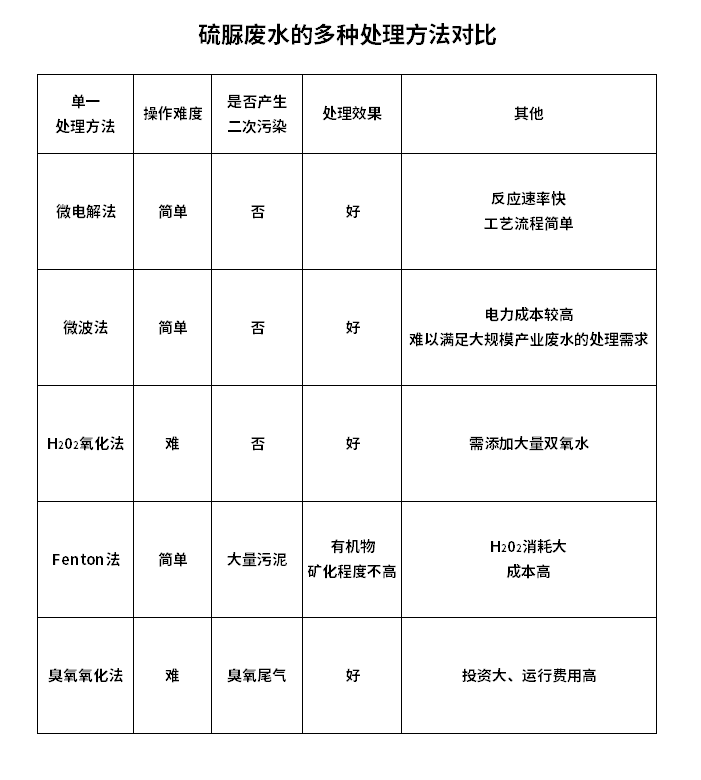 二、硫脲廢水處理方法對比