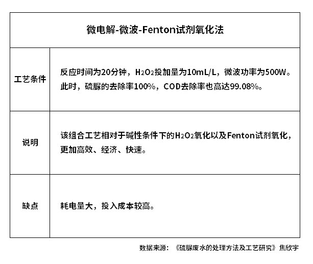 三、組合工藝法處理硫脲廢水針對硫脲廢水的現(xiàn)有組合工藝,是微電解-微波-Fenton試劑氧化法。