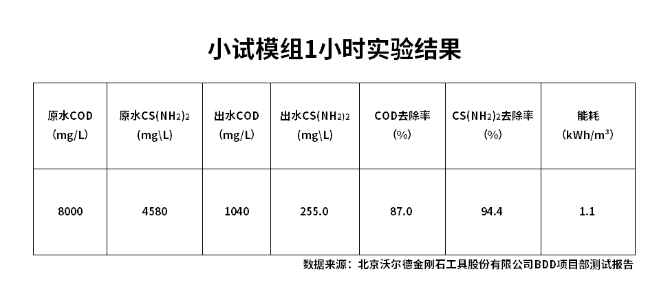 沃爾德BDD電極 | 試驗1小時,硫脲去除率達到94.4%
