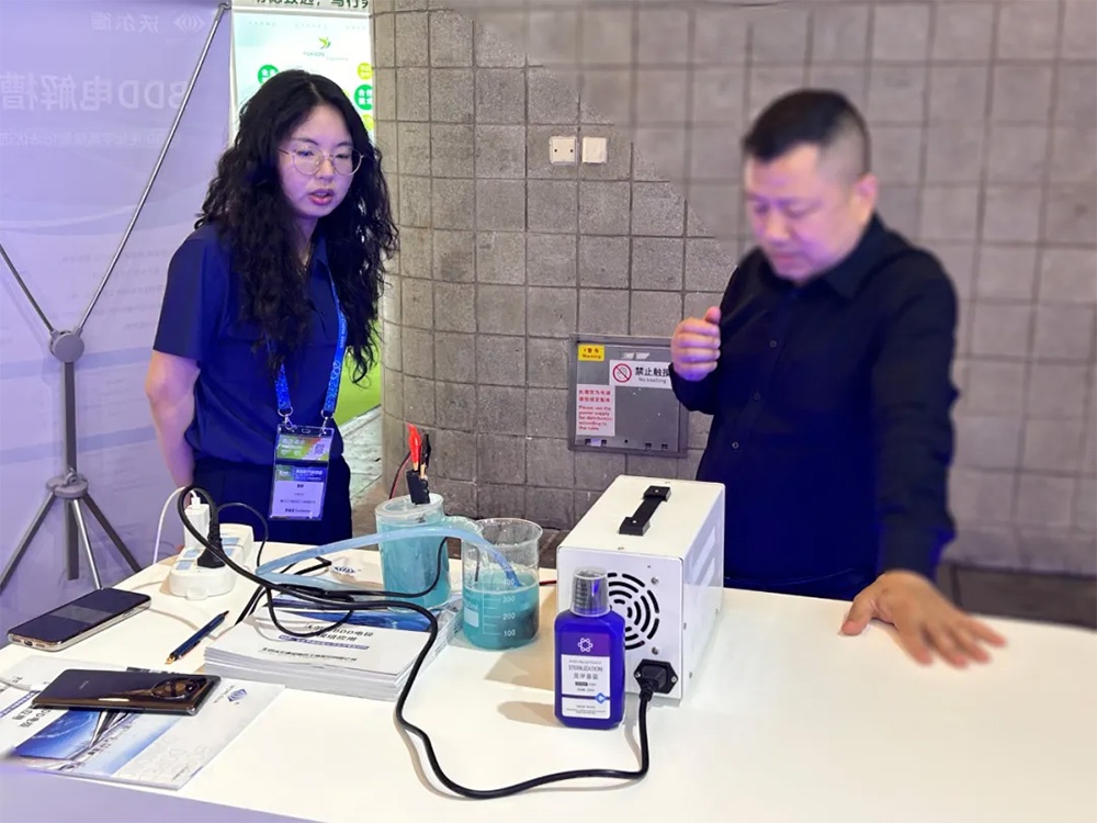 展會(huì)現(xiàn)場(chǎng),沃爾德通過(guò)BDD小試設(shè)備對(duì)亞甲基藍(lán)溶液的凈化試驗(yàn),生動(dòng)展示了電化學(xué)高級(jí)氧化法的凈化效果。該技術(shù)可高效處理高鹽、高毒性、高濃度、強(qiáng)酸堿、難降解的工業(yè)有機(jī)廢水,顯著降低化學(xué)需氧量(COD),為工業(yè)有機(jī)廢水處理提供了高效、環(huán)保的新途徑。