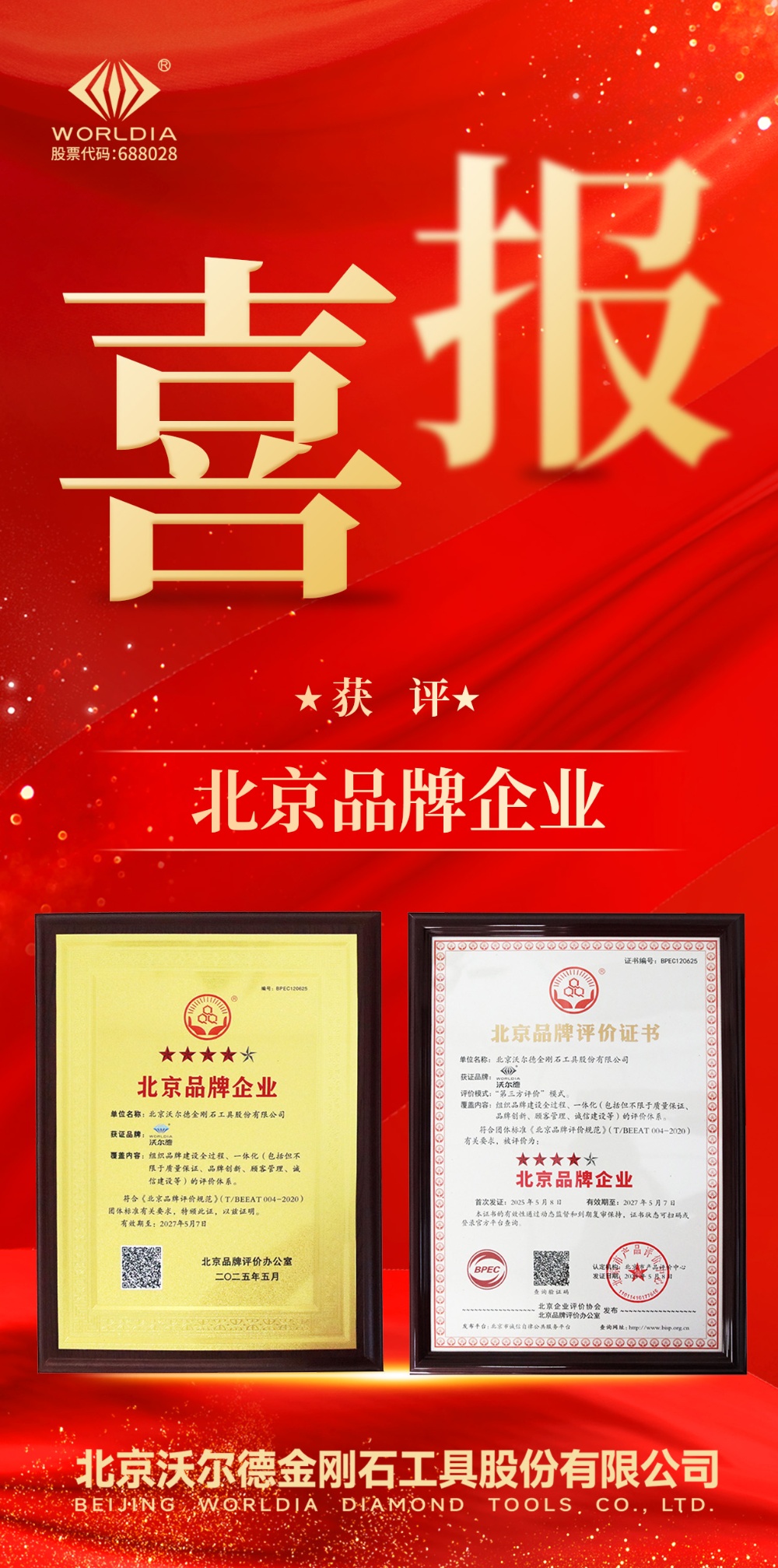 喜報(bào) | 沃爾德榮膺“北京品牌企業(yè)”稱號(hào) 2025-06-06 14:26:37 北京沃爾德金剛石工具股份有限公司 瀏覽次數(shù) 2030 上一條產(chǎn)學(xué)研深度融合|沃爾德“刀具聯(lián)合研究中心”正式揭牌! 下一條水展首日 | 沃爾德圓柱形可倒極鈮基BDD反應(yīng)器驚艷亮相,共啟水處理新篇