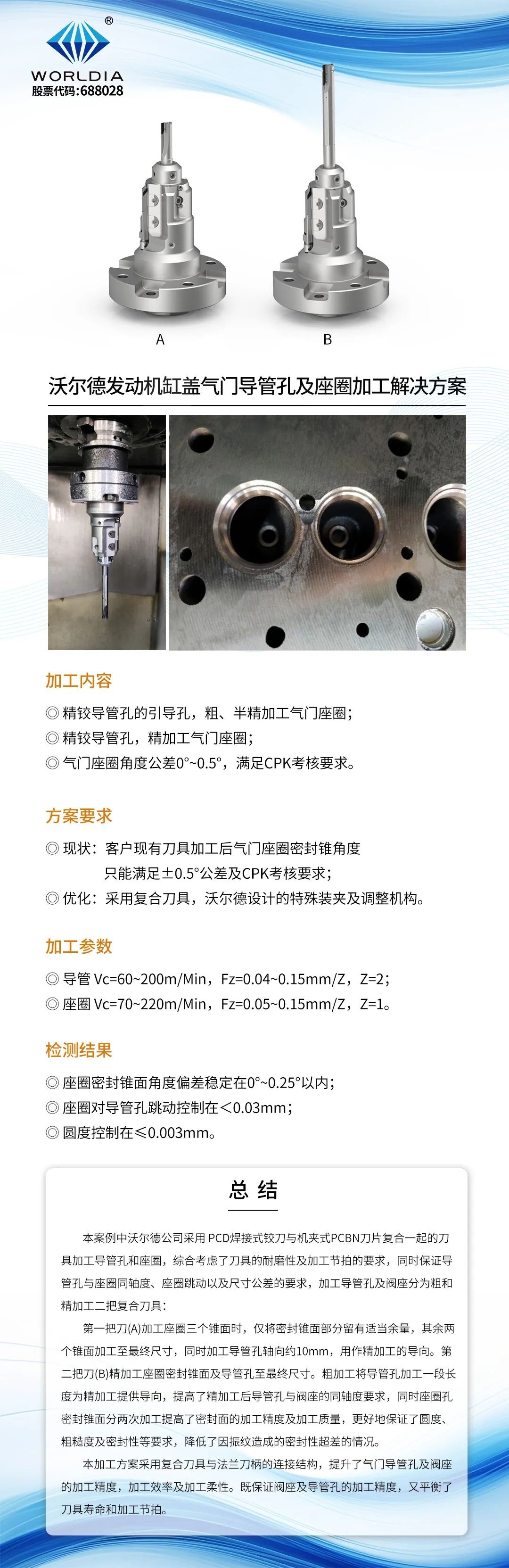 沃爾德發(fā)動(dòng)機(jī)缸蓋氣門(mén)導(dǎo)管孔及座圈加工解決方案—PCD+PCBN復(fù)合非標(biāo)刀具