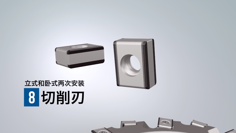 6.以銑代磨一體化——獨(dú)特的多種刀片安裝組合技術(shù),實(shí)現(xiàn)一把銑刀涵蓋粗精加工。配合高精度刀盤和立臥安裝的精磨刀片,其多種刃口設(shè)計(jì)配合修光刀片,構(gòu)筑起三層切削刃結(jié)構(gòu)。這一設(shè)計(jì)使刀具能夠從半精加工到超精加工,滿足高表面光潔度需求,實(shí)現(xiàn)以銑代磨的卓越加工效果。