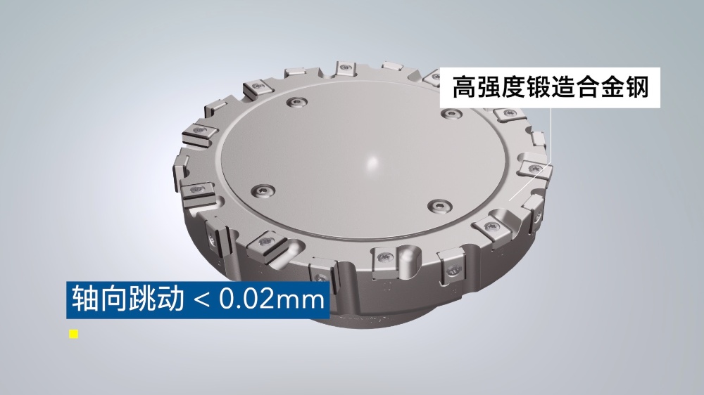 2.卓越的高精度性能——FMP-LN套式方肩銑刀,其刀體采用高強(qiáng)度鍛造合金鋼打造。安裝部分經(jīng)由高精度五軸加工設(shè)備一次裝夾硬銑加工完成,確保每一環(huán)節(jié)都精準(zhǔn)無誤。刀盤定位精度在0.01mm以下,精磨的刀片公差同樣控制在0.01mm以下。組裝完成的刀具,其軸向跳動(dòng)被控制在0.02mm以下,能夠確保加工精度達(dá)到要求。