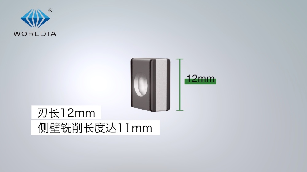 7.長刃銑削優(yōu)勢——采用刃長12mm的刀片,能實(shí)現(xiàn)最大側(cè)壁銑削長度達(dá)11mm,特別適用于型腔側(cè)壁的高效加工,展現(xiàn)了長刃銑刀獨(dú)特的加工優(yōu)勢。