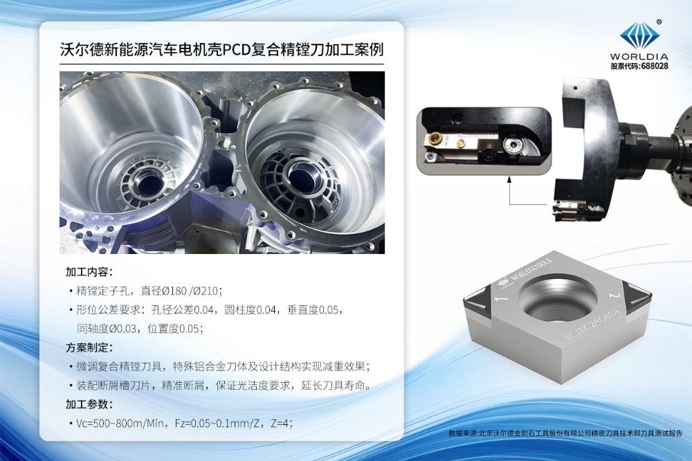 沃爾德PCD復(fù)合精鏜刀:新能源汽車電機(jī)殼定子孔加工的精密之選